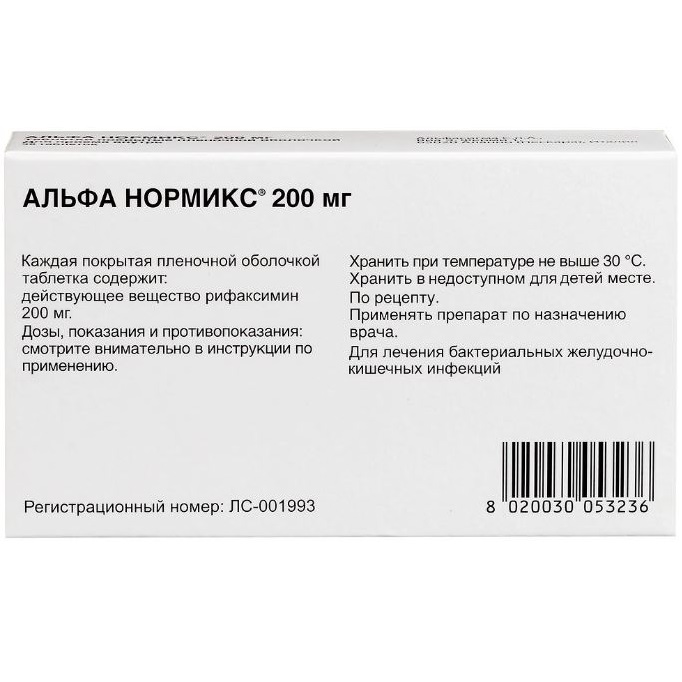 Активное вещество: рифаксимин 200 мг.
