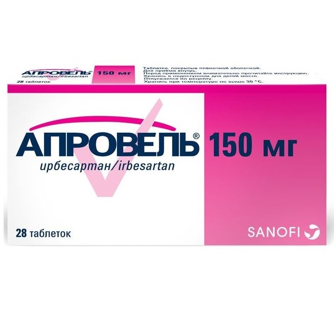 Гиперкалиемия: в клиническом исследовании IDNT процент пациентов с гиперкалиемией (>6мЭкв/л) составил 18.6% в группе препарата Апровель® по сравнению с 6.0% в группе плацебо. В клиническом исследовании IRMA 2 процент пациентов с гиперкалиемией (>6мЭкв/л) составил 1.0% в группе препарата Апровель®, а в группе плацебо гиперкалиемии не наблюдалось. В клиническом исследовании IDNT частота прекращения лечения из-за развития гиперкалиемии при применении препарата Апровель® и плацебо составляла 2.1% и 0.36% соответственно. В клиническом исследовании IRMA частота прекращения лечения из-за развития гиперкалиемии при приеме препарата Апровель® и плацебо составляла 0.5% и 0% соответственно.