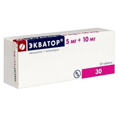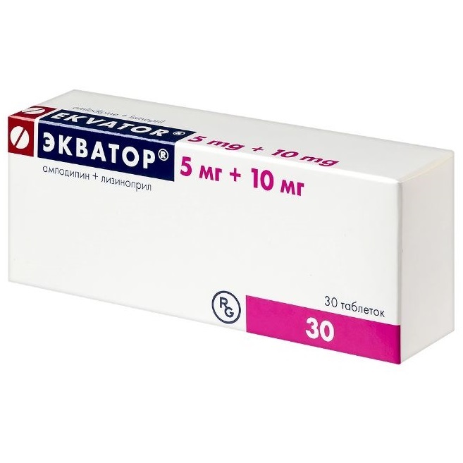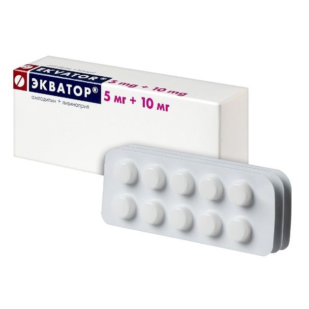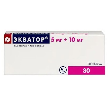 Артериальная гипертензия (у пациентов, которым показана комбинированная терапия). Препарат Экватор® показан в качестве заместительной терапии у взрослых пациентов с адекватным контролем артериального давления на фоне одновременного приёма лизиноприла и амлодипина в указанных дозах.