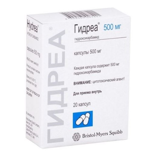 Обычно назначают препарат Гидреа® в начальной суточной дозе 15 мг/кг; затем подбирают такую дозу, которая поддерживает количество лейкоцитов не ниже 4х109/л и количество тромбоцитов не ниже 100х109/л.