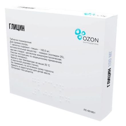 Активное вещество: глицин 100 мг.