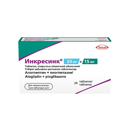 3. если Вы уже принимаете таблетки алоглиптина и пиоглитазона по отдельности, может заменить препарат Инкресинк® в одной таблетке.