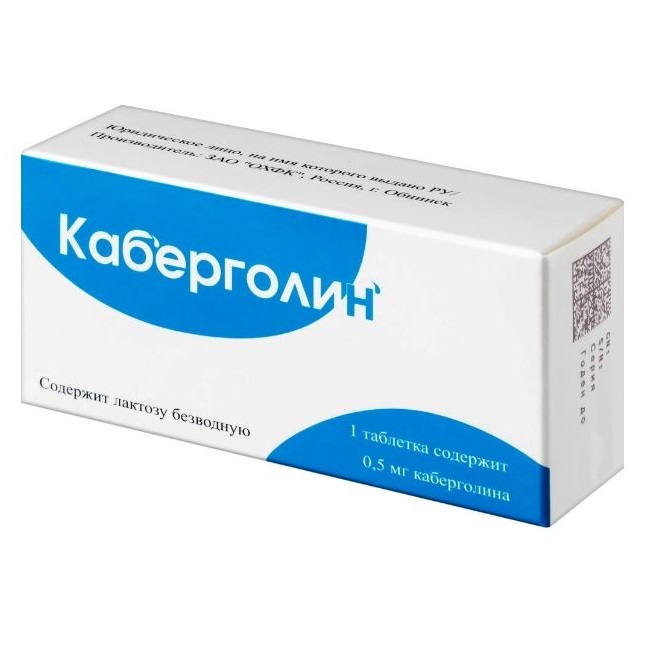 Активное вещество: каберголин 500 мкг.