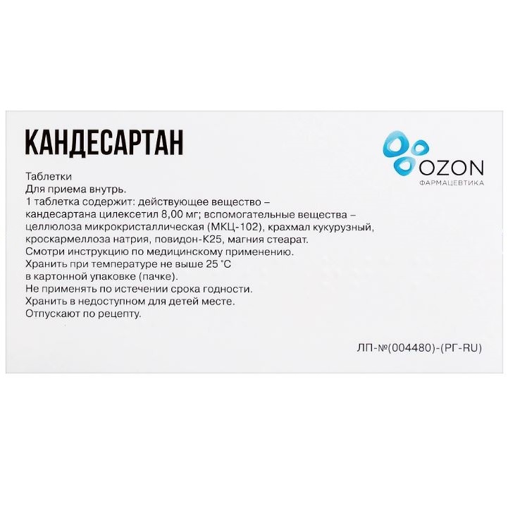 Действующее вещество: кандесартана цилексетил – 8,00 мг.