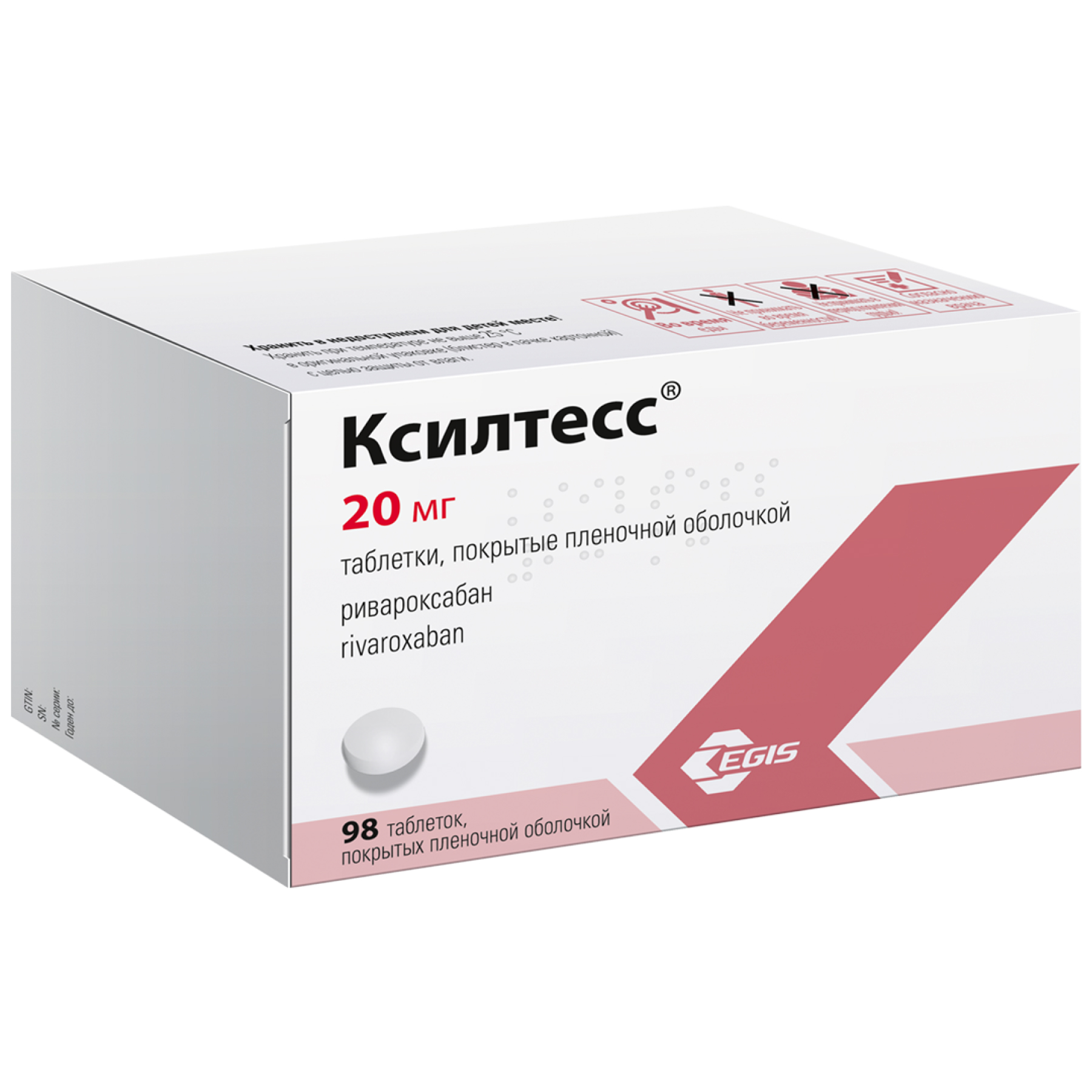 Каждая таблетка содержит 20 мг ривароксабана.