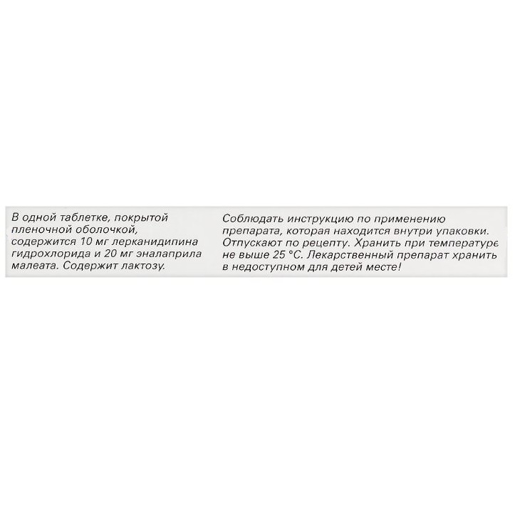 В зависимости от клинического эффекта и индивидуальной переносимости доза может быть увеличена до лерканидипин 10 мг/эналаприл 20 мг 1 раз/сут.
