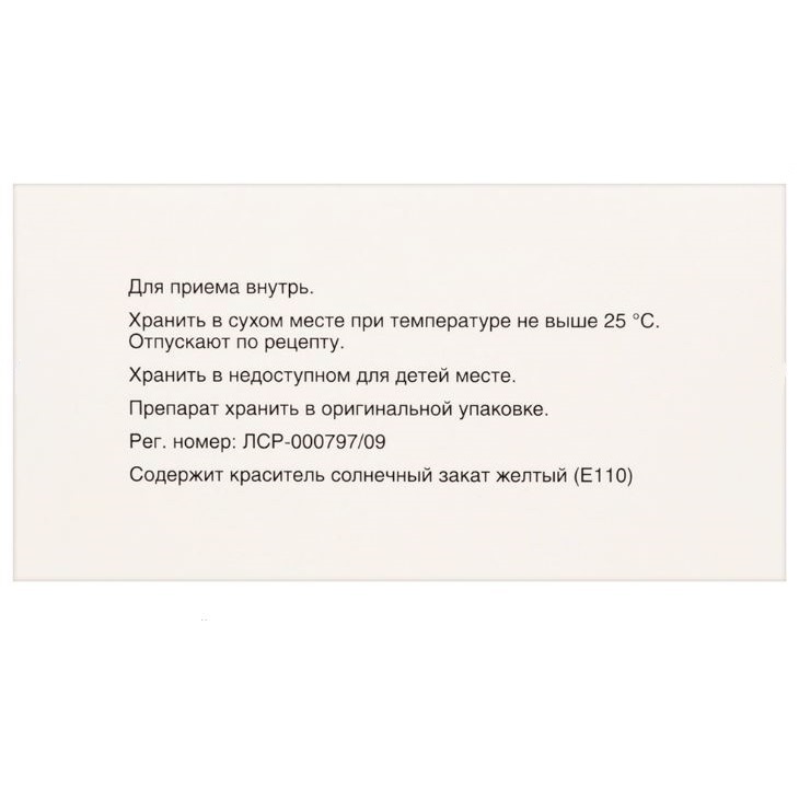 Крышечка: желатин, титана диоксид, краситель хинолиновый желтый, краситель солнечный закат желтый.
