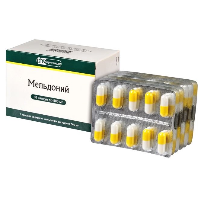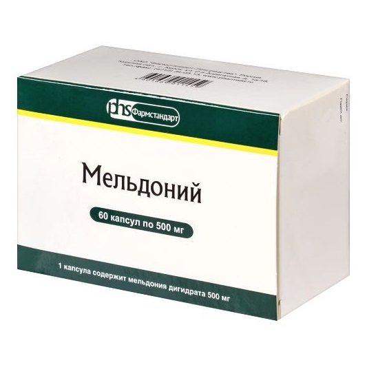 Активное вещество: мельдония дигидрата (триметилгидразиния пропионата дигидрата) - 500 мг.