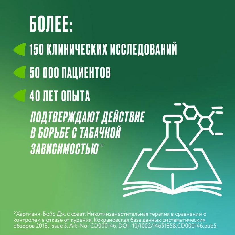 Действующее вещество: никотин-β-циклодекстриновый комплекс - 17,1 мг (указанное количество эквивалентно 2 мг никотина);