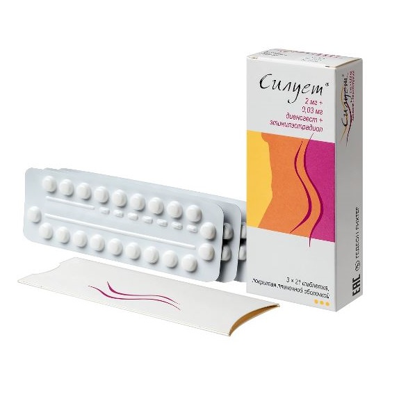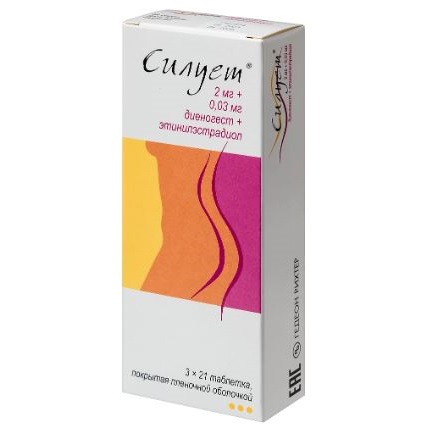 Действующие вещества: диеногест - 2 мг, этинилэстрадиол - 0,03 мг.