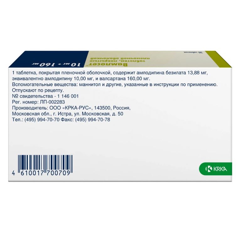 Действующие вещества: амлодипина безилат 13,88 мг, эквивалентно амлодипину 10,00 мг ,Валсартан А, субстанция-гранулы 251,35 мг.