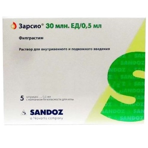 Применение препарата Зарсио® у больных ВИЧ инфекцией поддерживает число нейтрофилов в пределах нормальных значений, что позволяет соблюдать необходимый режим дозирования антиретровирусных препаратов и средств миелосупрессивной терапии. Признаков увеличения репликации ВИЧ при применении препарата Зарсио® не отмечено.
