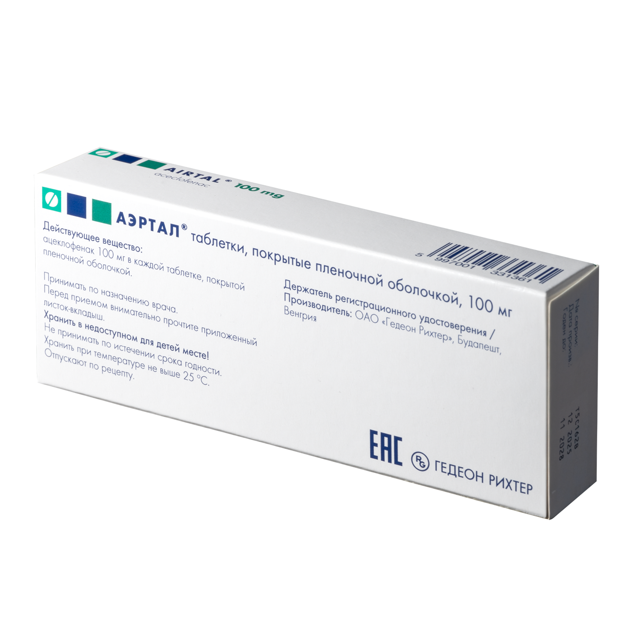 Препарат Аэртал® таблетки, покрытые оболочкой, 100 мг считается безнатриевым, т.к. таблетка содержит менее 1 ммоль (23 мг) натрия.