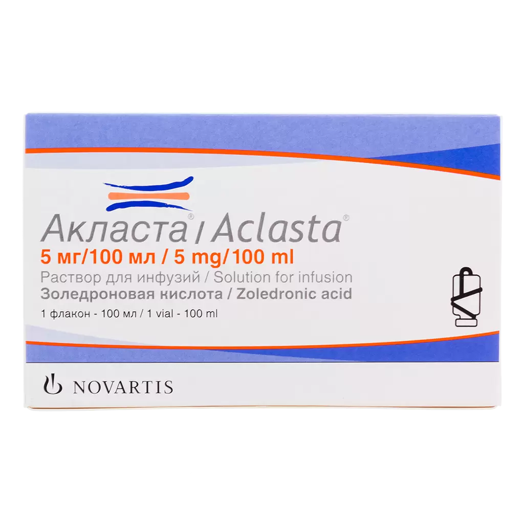 Для лечения постменопаузного остеопороза у женщин и остеопороза у мужчин рекомендуемая доза препарата Акласта составляет 5 мг (содержимое одного флакона препарата — 100 мл раствора) внутривенно 1 раз в год. Если поступление в организм кальция и витамина D с пищей недостаточно, пациентам следует дополнительно назначить препараты кальция и витамина D.