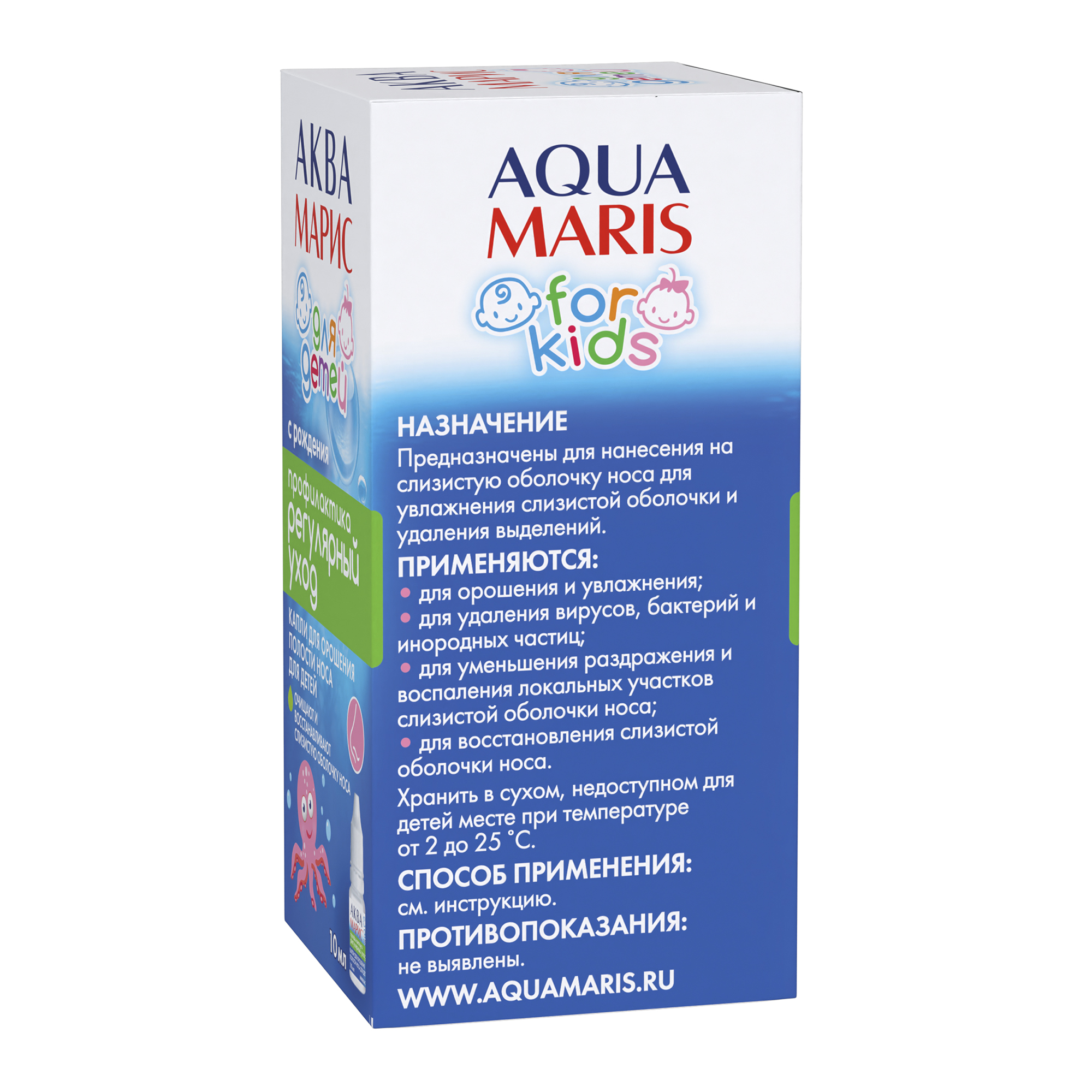 Аква Марис впрыскивают или закапывают в каждый носовой ход столько, сколько требует ситуация, устраняя вытекающий избыток жидкости с помощью ваты или носового платка. Процедура может быть повторена многократно до тех пор, пока скопления загрязняющих частиц не будут успешно размягчены и удалены.