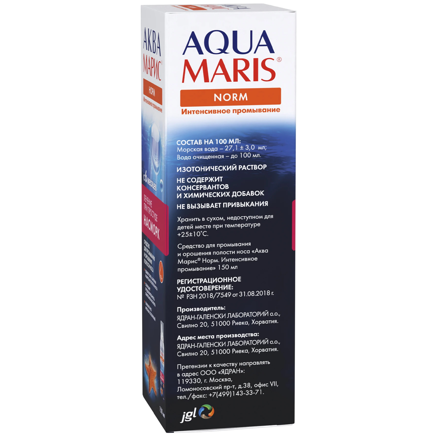 Действующее вещество: Натуральная морская вода 31,82 мл.