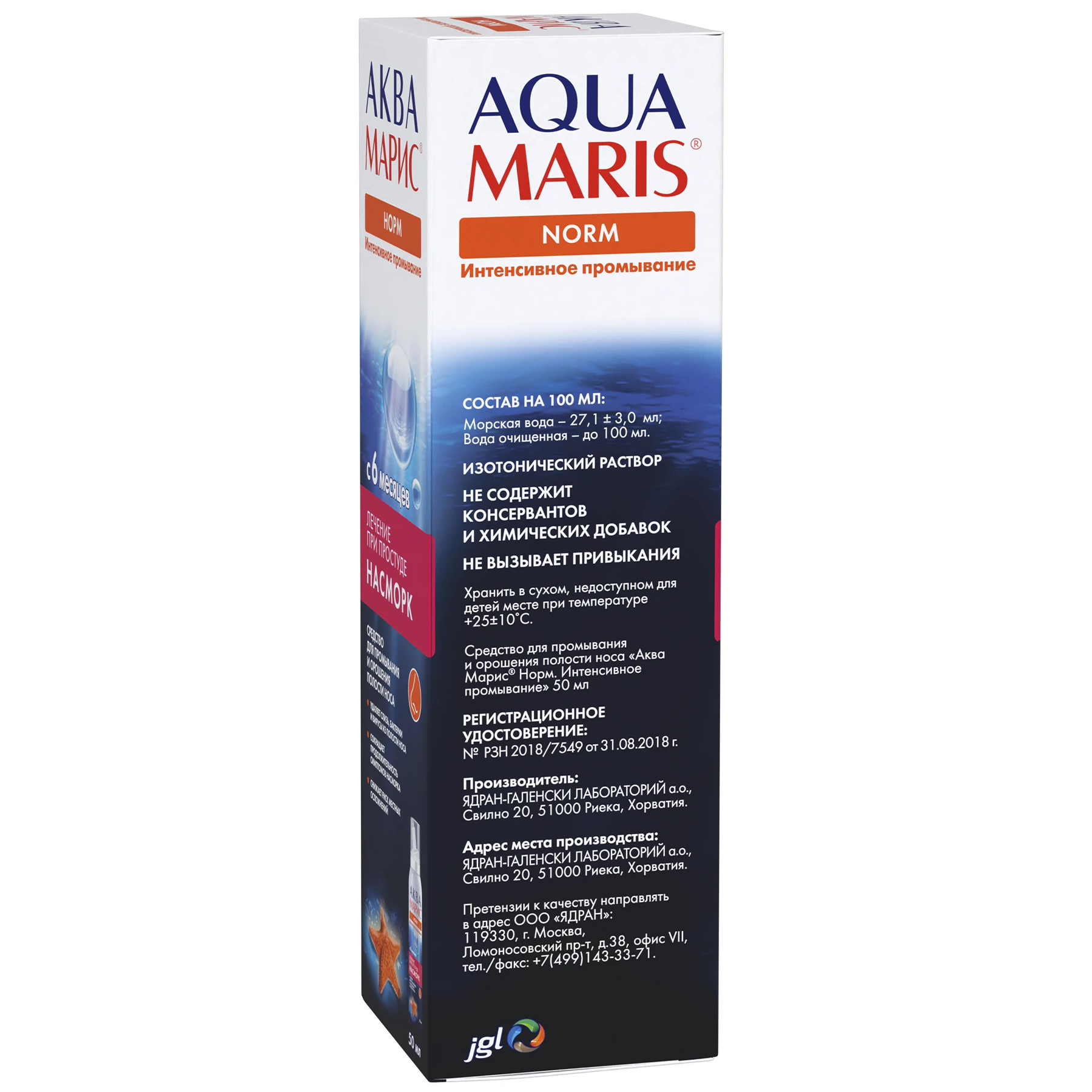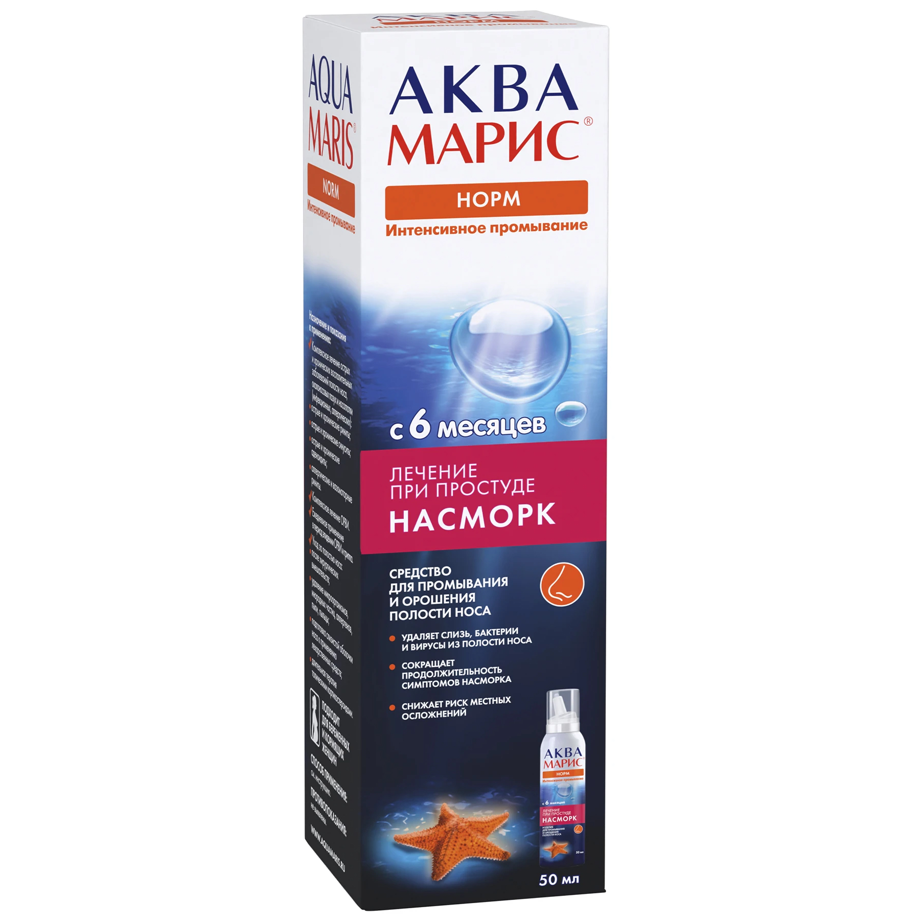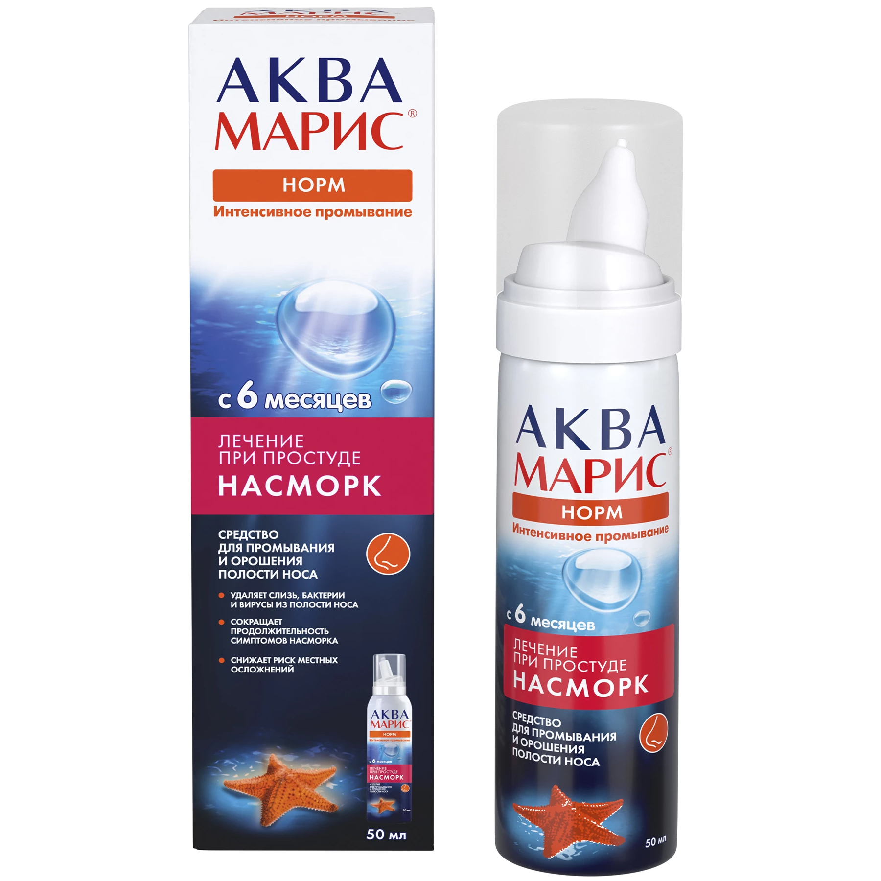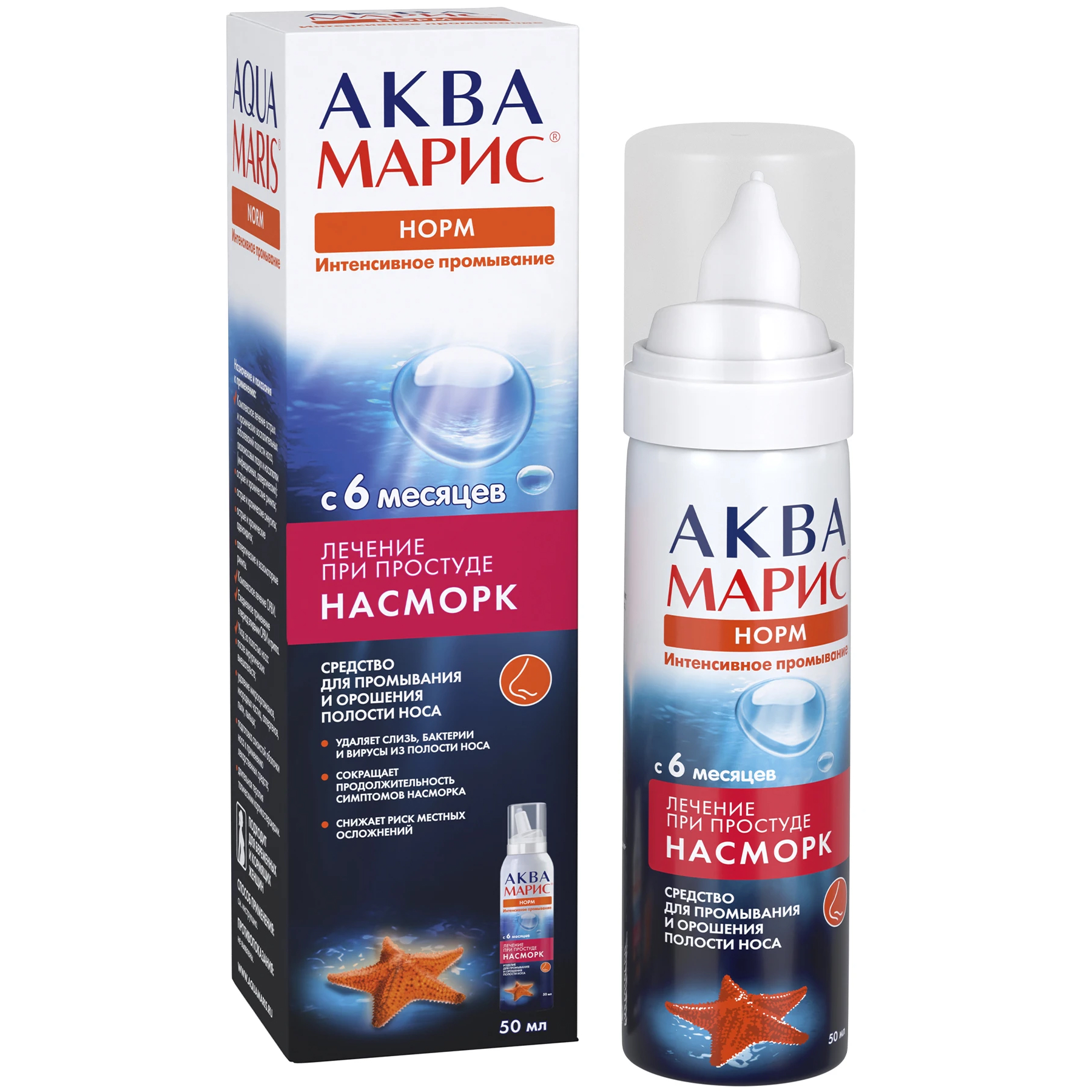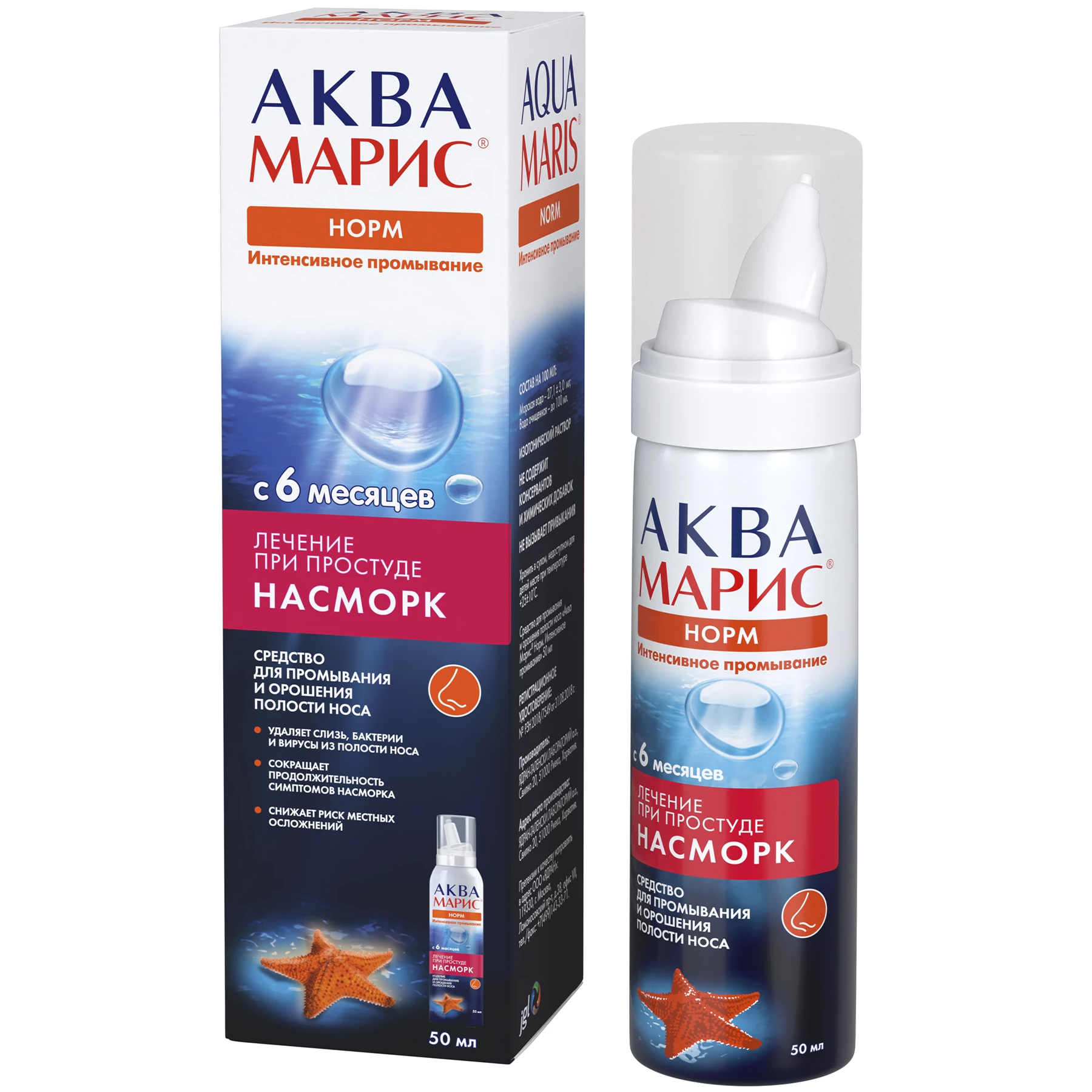 Давление в баллоне средства «Аква Марис® Норм. Интенсивное промывание» – достигает значения 8,0∙105 Па, что способствует эффективному промыванию носовых ходов по всей длине.