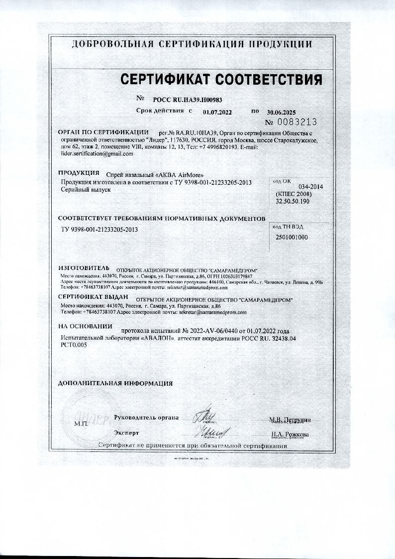 Спрей Аква АirMORE — это эффективное средство на основе морской соли для борьбы с заложенностью носа. Обладает увлажняющим, очищающим и иммуномодулирующим действием.