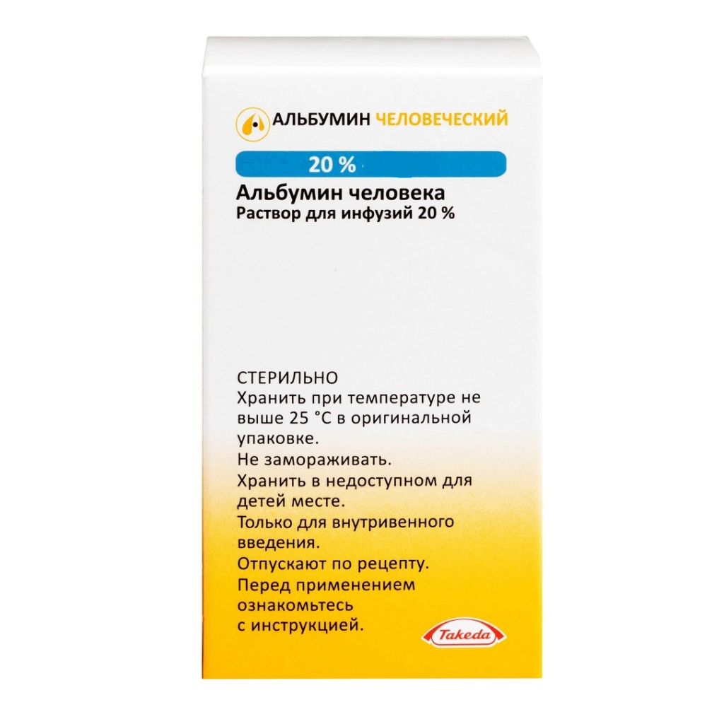 Плазмозамещающее средство, получаемое путем фракционирования человеческой плазмы. Раствор альбумина 5% является изоонкотическим плазме. Раствор альбумина 20% является гиперонкотическим, и его коллоидно-осмотический эффект превосходит таковой плазмы примерно в 4 раза. При внутривенном введении препарата повышается онкотическое давление во внутрисосудистом пространстве, что приводит к увеличению и поддержанию объема циркулирующей плазмы. Продолжительность этого эффекта у разных пациентов может различаться. У некоторых пациентов увеличение объема плазмы может сохраняться в течение нескольких часов. Альбумин является также транспортным белком, связывающим и переносящим в сосудистом русле гормоны, ферменты, лекарственные препараты.