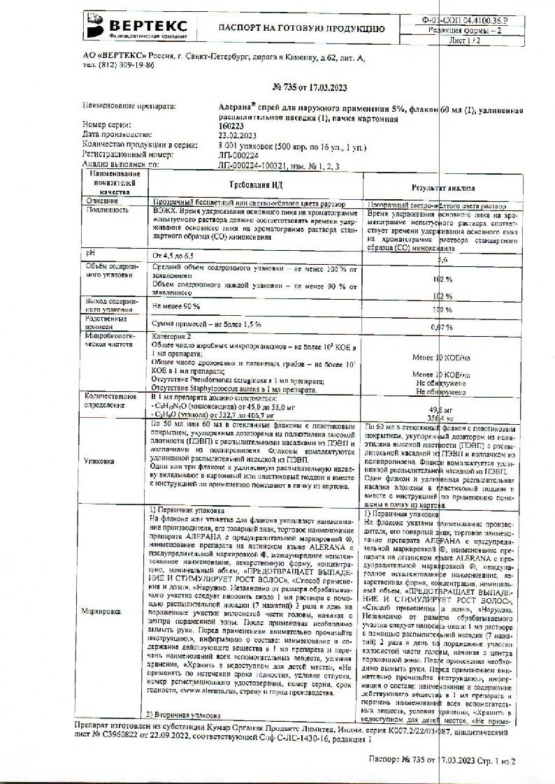 Рекомендован для лечения интенсивного выпадения волос у мужчин, а также пациентам, у которых при применении 2% раствора не наблюдается косметически удовлетворительного роста волос, и пациентам, для которых желателен более быстрый рост волос.
