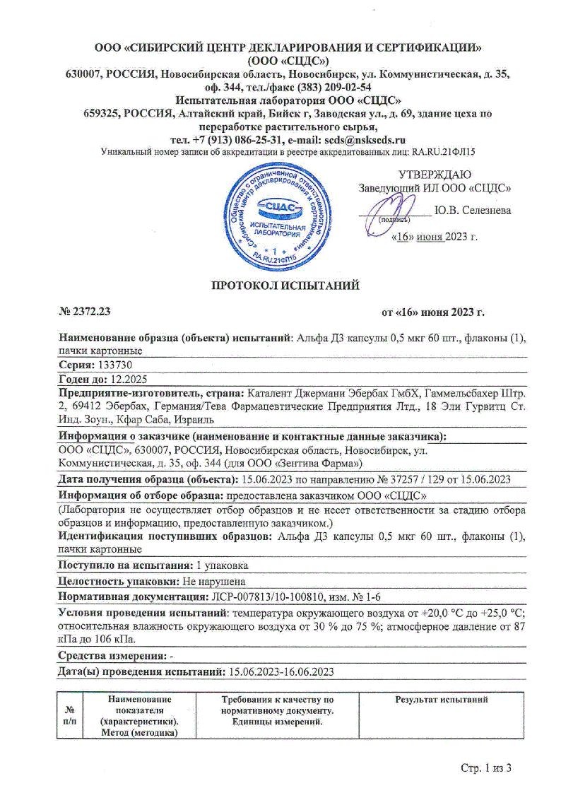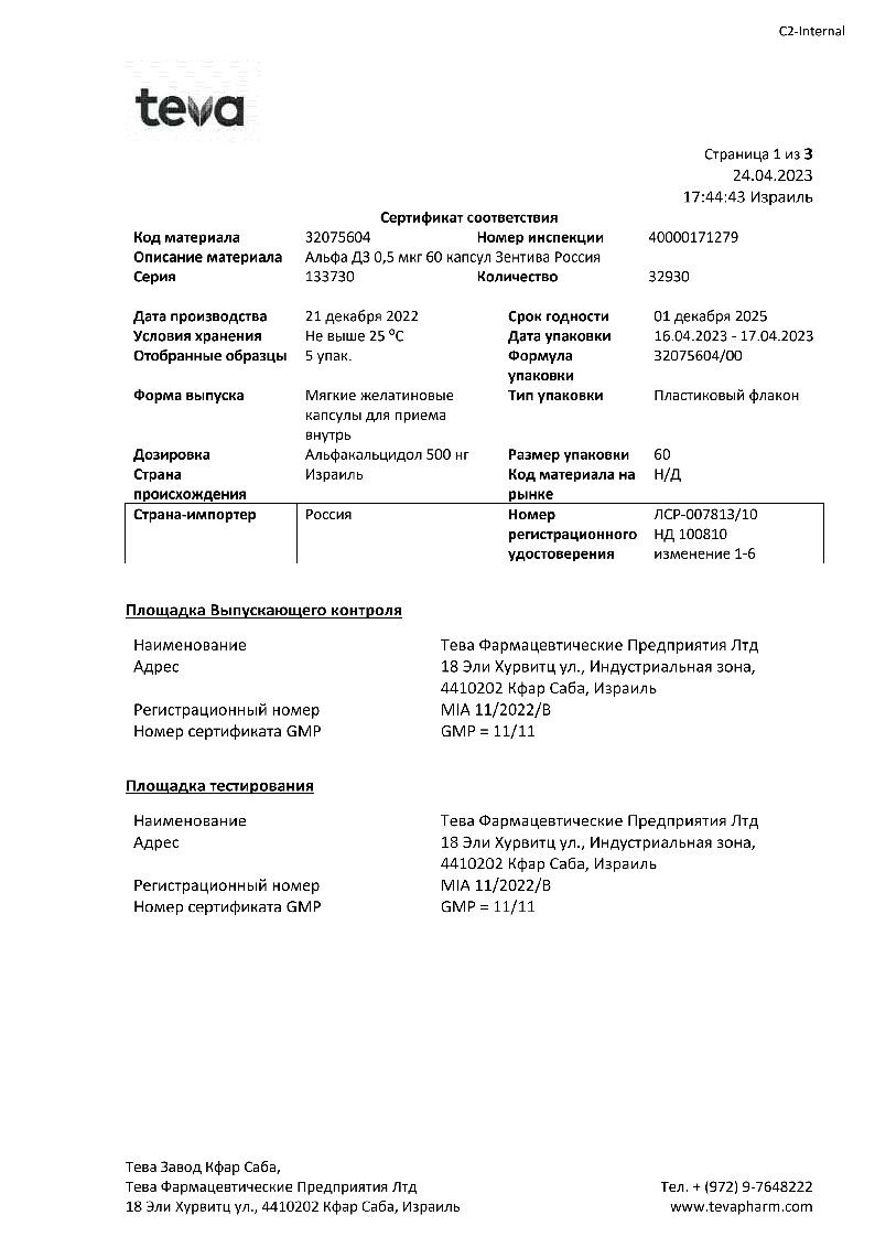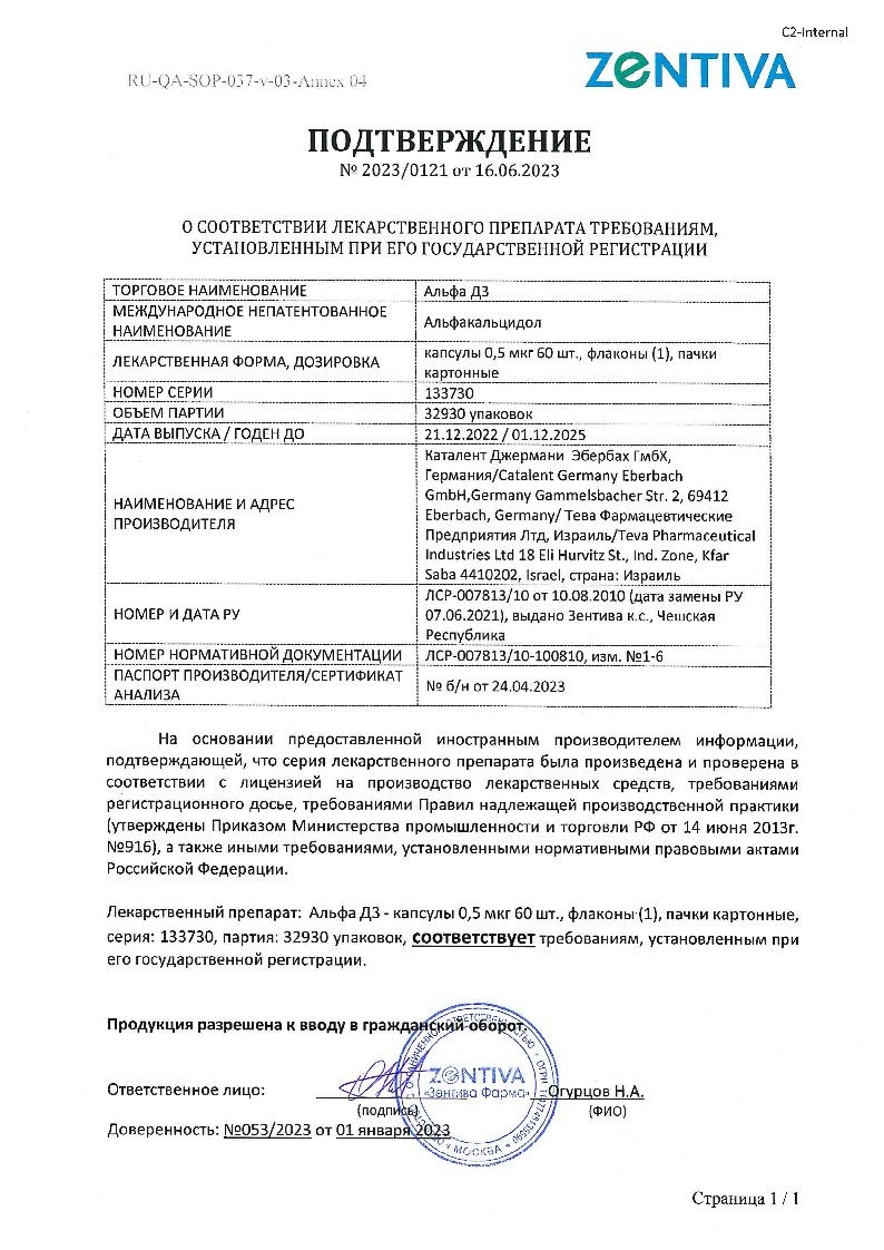 Активное вещество: альфакальцидол 0.5 мкг.