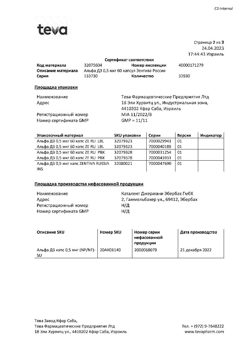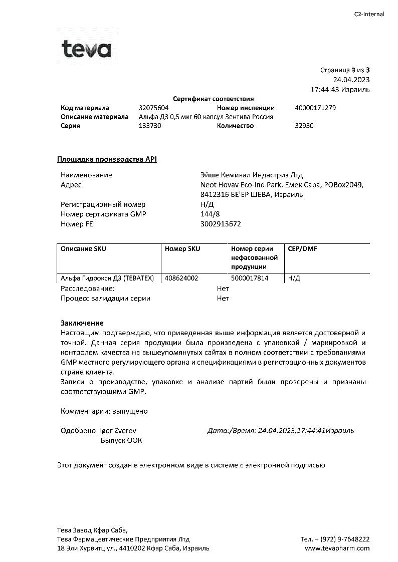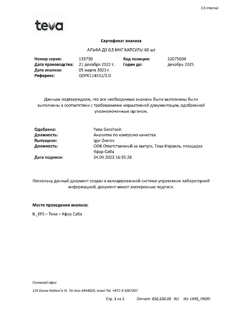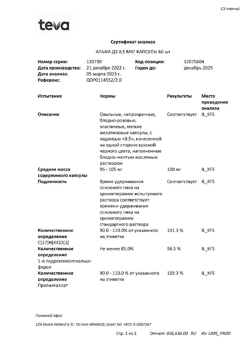 Активное вещество: альфакальцидол 0.5 мкг.