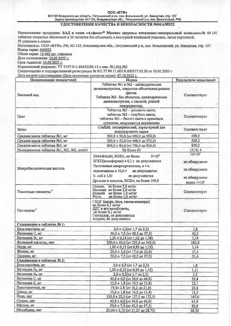 Витамины Алфавит Мамино Здоровье в основном не вызывают побочных действий, за исключением аллергических реакций при повышенной чувствительности к компонентам комплекса.