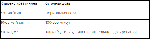 Следующая схема может служить ориентиром для коррекции дозы при недостаточности функции почек: