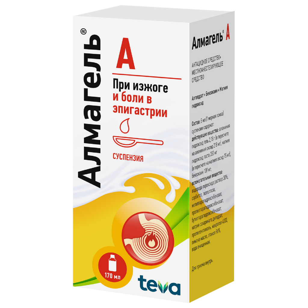 Алмагель А нейтрализует свободную соляную кислоту в желудке, что приводит к уменьшению переваривающей активности желудочного сока. Не вызывает вторичной гиперсекреции желудочного сока. Оказывает местноанестезирующее, адсорбирующее и обволакивающее действие, уменьшает влияние повреждающих факторов на слизистую оболочку.