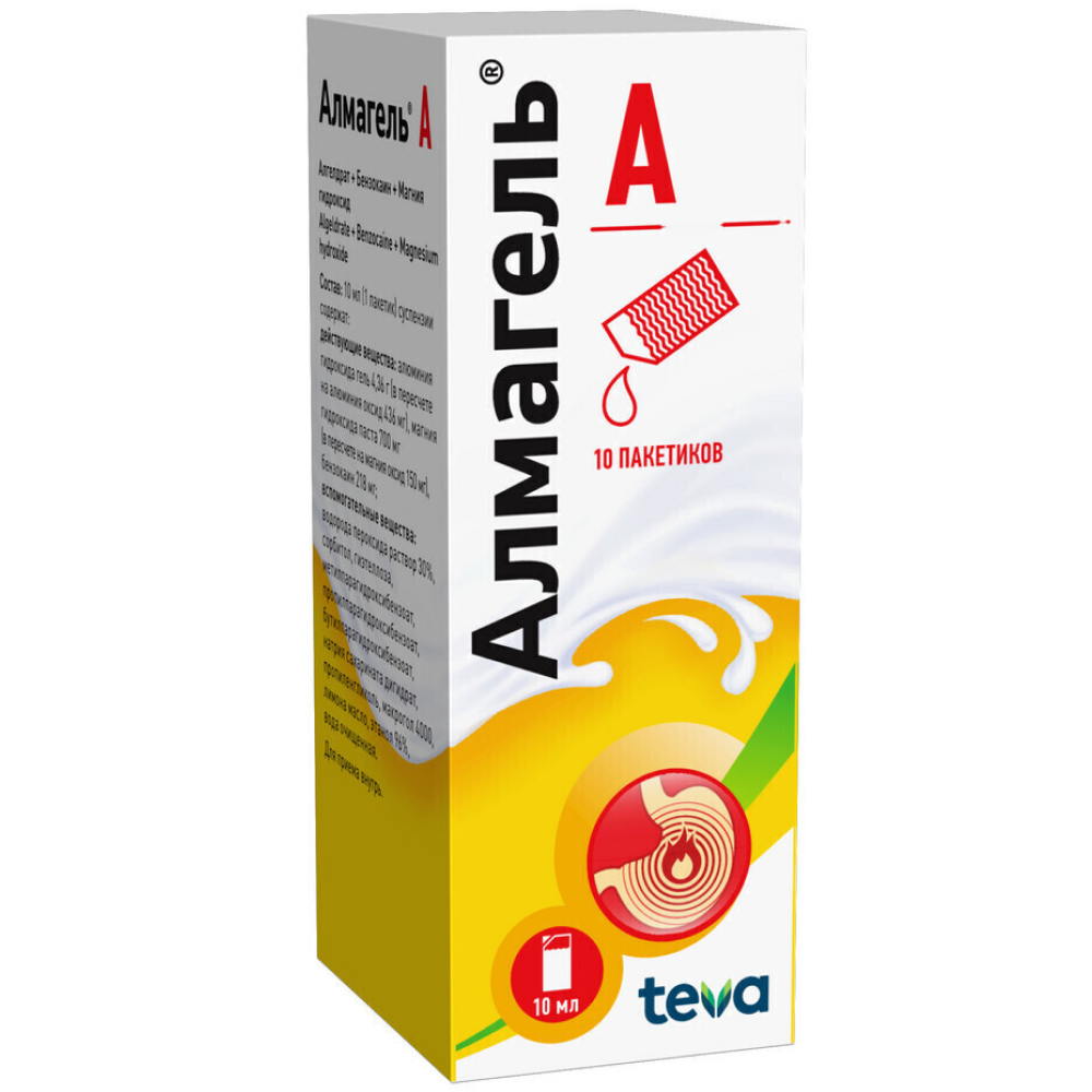 Алмагель А нейтрализует свободную соляную кислоту в желудке, что приводит к уменьшению переваривающей активности желудочного сока. Не вызывает вторичной гиперсекреции желудочного сока. Оказывает местноанестезирующее, адсорбирующее и обволакивающее действие, уменьшает влияние повреждающих факторов на слизистую оболочку.