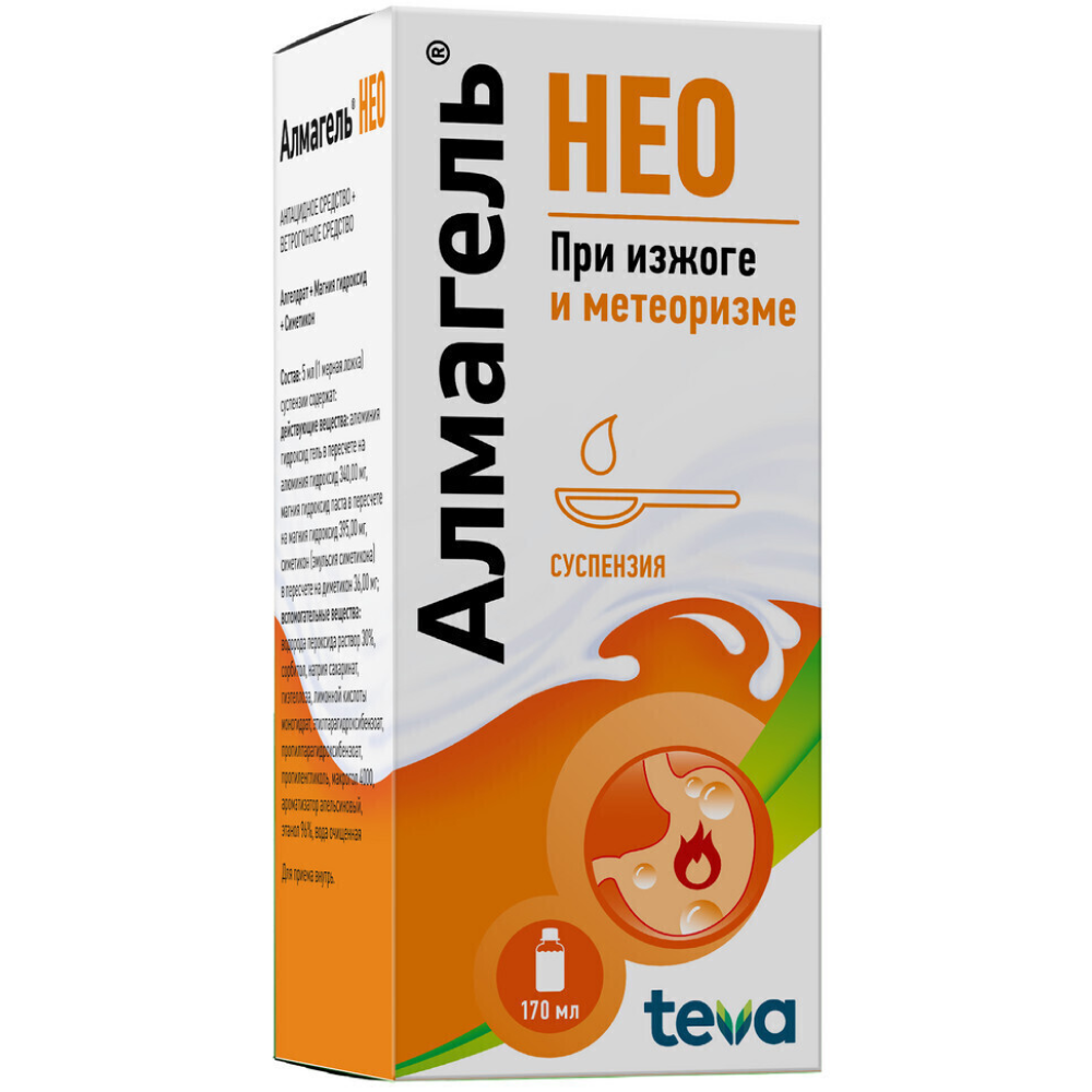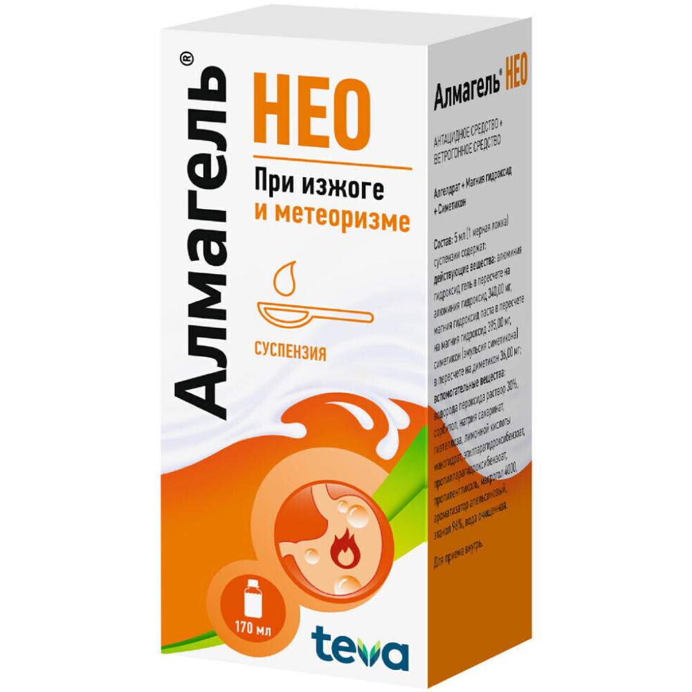Одна мерная ложка (5 мл) препарата Алмагель® Нео содержит 0,475 г сорбитола, который противопоказан при врожденной непереносимости фруктозы и может вызвать раздражение желудка и диарею.
