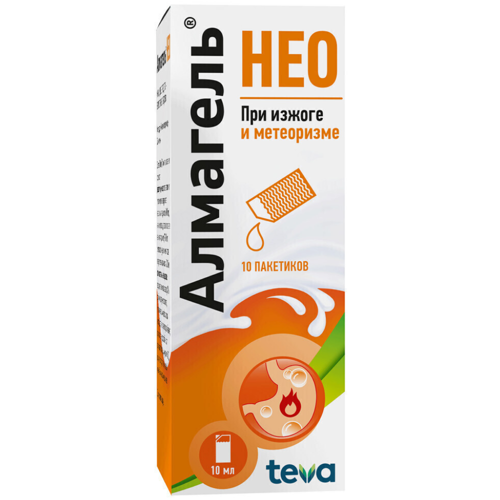 Перед приемом суспензию необходимо гомогенизировать, встряхивая флакон или разминая и встряхивая пакетик. Желательно принимать Алмагель® Нео в неразведенном виде. Не рекомендуется прием жидкости в течение получаса после приема препарата.