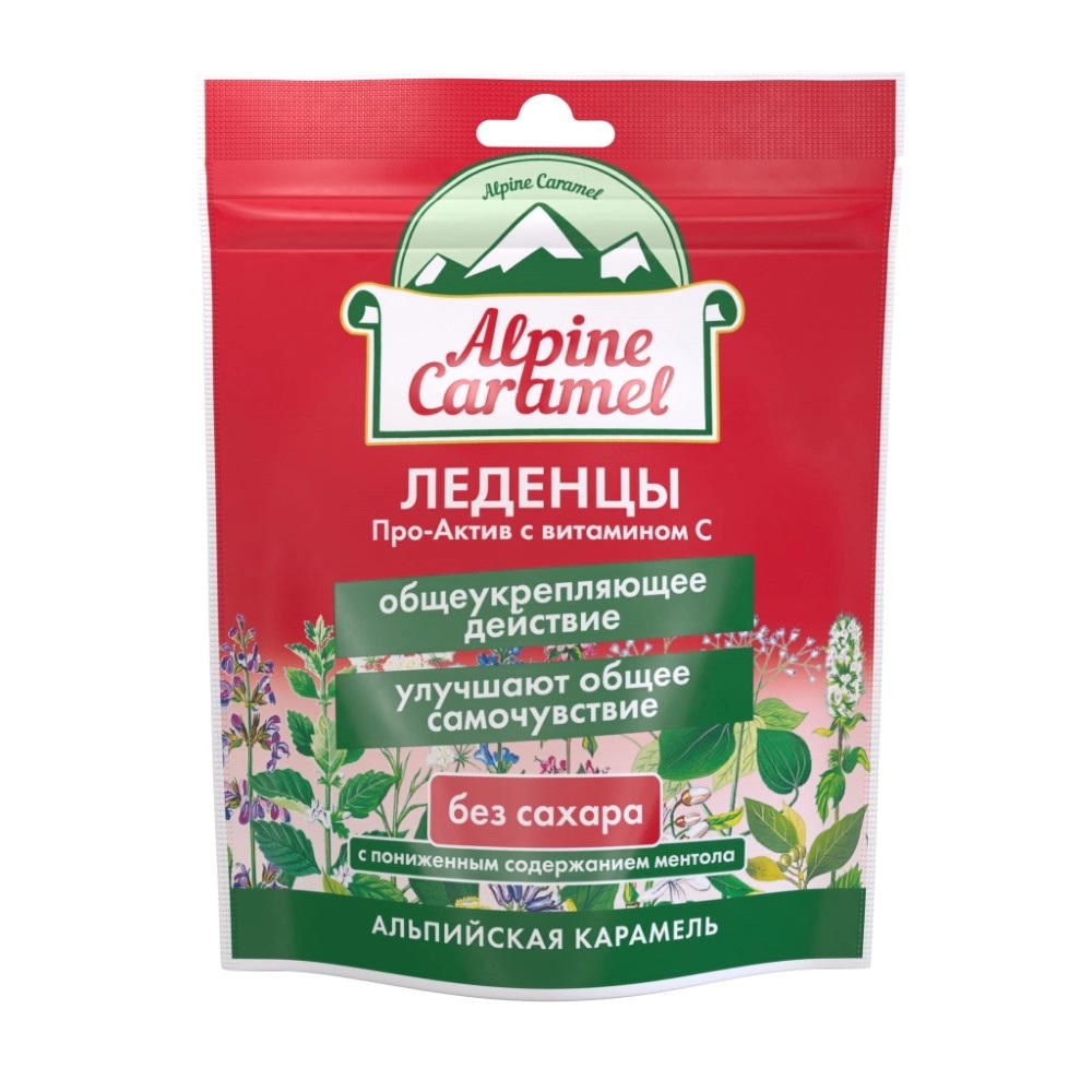 ALPINE CARAMEL ЛЕДЕНЦЫ АЛЬПИЙСКАЯ КАРАМЕЛЬ ПРО-АКТИВ С ВИТАМИНОМ С БЕЗ САХАРА - леденцы для рассасывания .