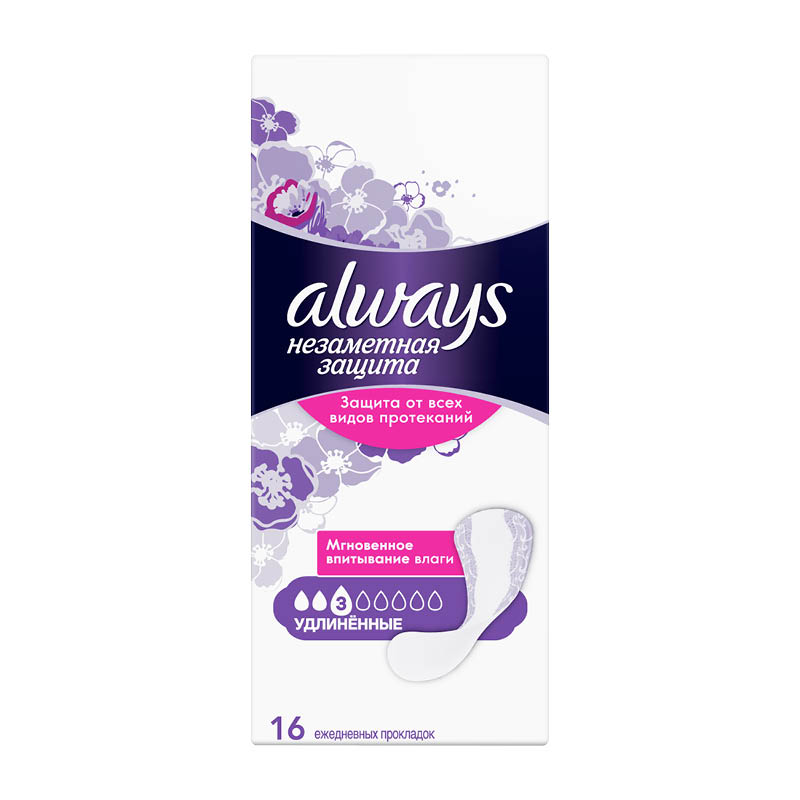 Ежедневные гигиенические прокладки Always «Незаметная защита» созданы для тех моментов, когда вам необходима дополнительная защита. Их технология нейтрализации запаха дарит непревзойденную свежесть и обеспечивает чувство уверенности. Ежедневные гигиенические прокладки Always «Незаметная Защита» — отличное средство защиты при всех видах выделений. Тройная защита: мгновенно впитывают, сохраняют сухость, нейтрализуют неприятные запахи. Надежная защита. Мгновенно впитывают влагу. Технология нейтрализации запаха. Незаметны под одеждой. С легким ароматом. Проверено дерматологами.