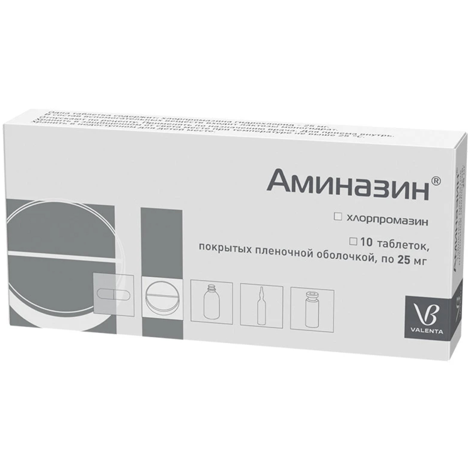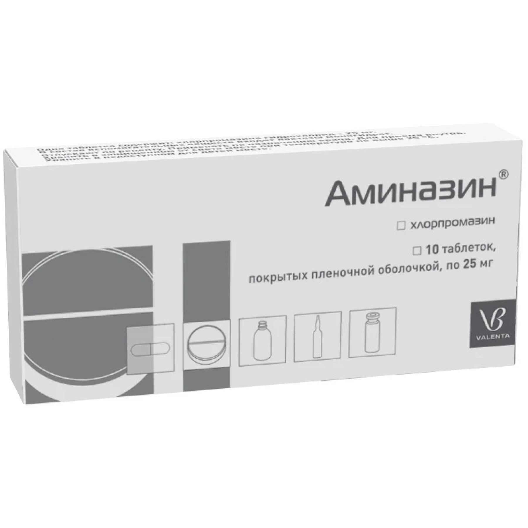 Активное вещество: хлорпромазина гидрохлорид в пересчете на 100 % вещество - 25 мг.