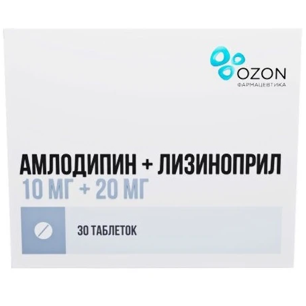 Действующие вещества: амлодипина безилат - 13,88 мг, в пересчете на амлодипин - 10,00 мг, лизиноприла дигидрат - 21,76 мг, в пересчете на лизиноприл - 20,00 мг.
