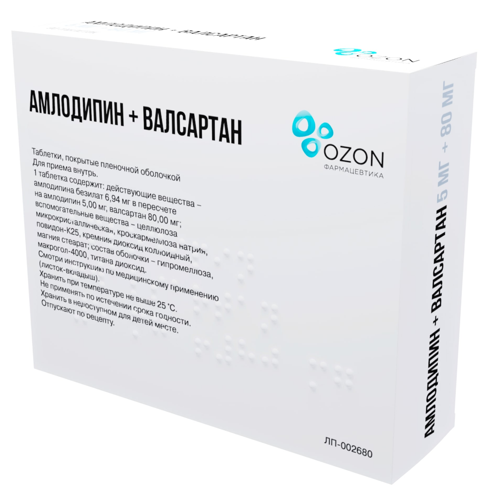 Действующие вещества: амлодипина безилат - 6,94 мг в пересчете на амлодипин - 5,0 мг, валсартан - 80,00 мг.