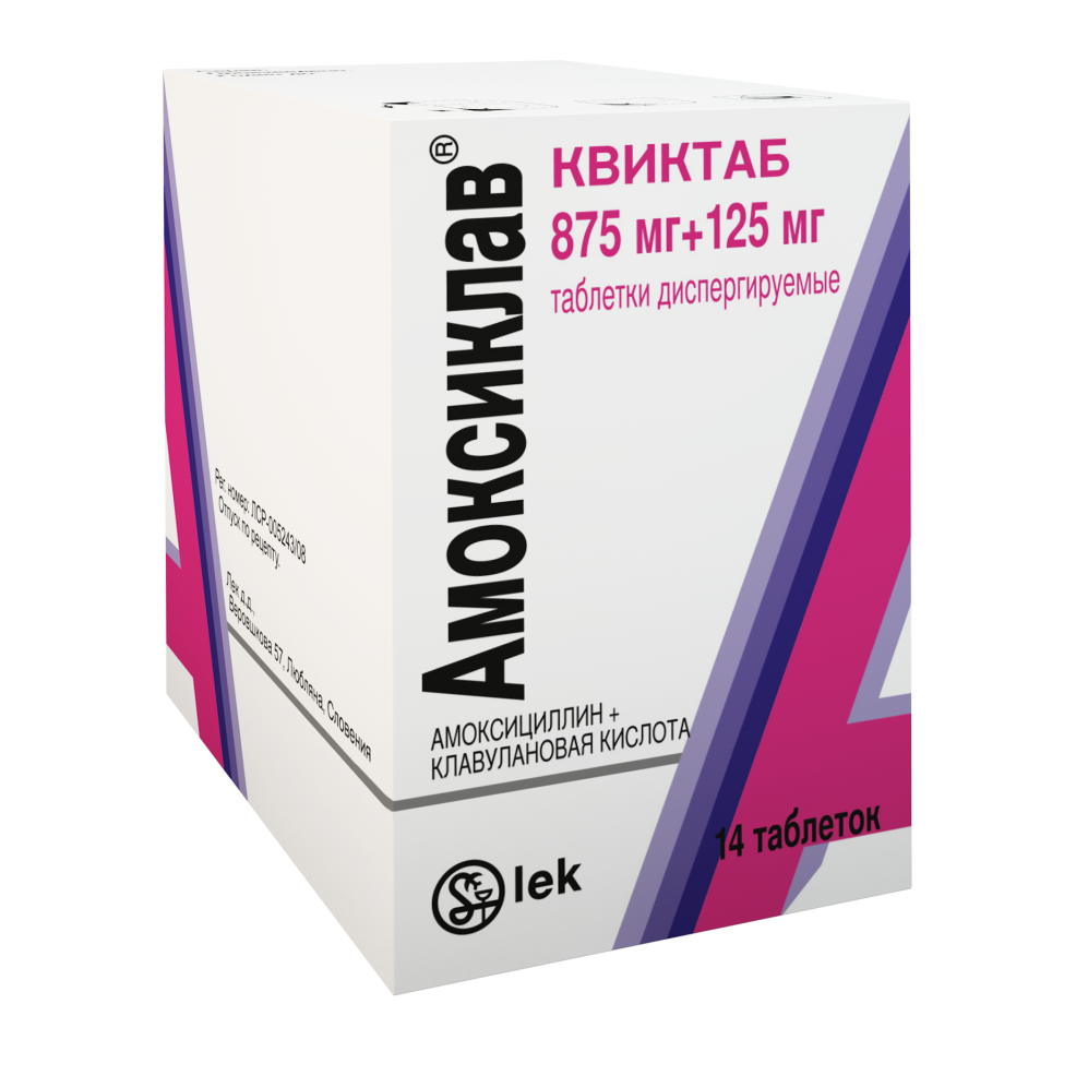 Диспергируемые таблетки препарата Амоксиклав®Квиктаб 500 мг/125 мг: Взрослые и дети старше 12 лет с массой тела >40 кг: