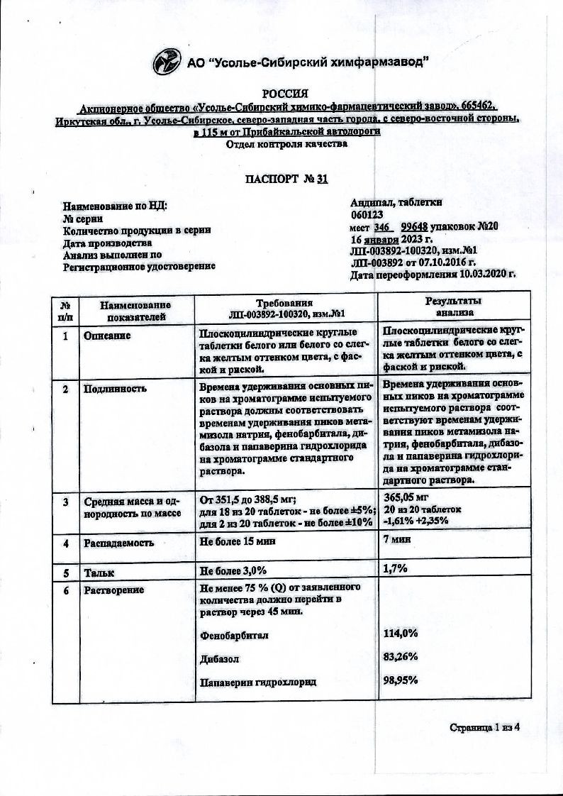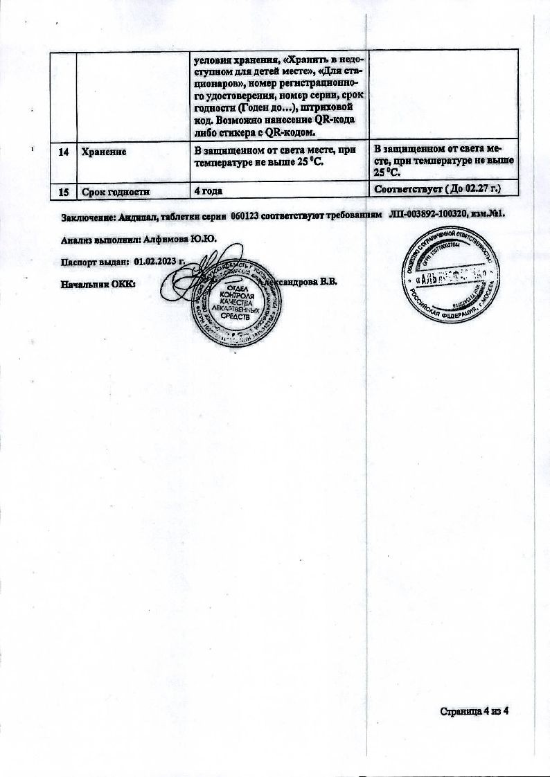 Для Андипала: симптомы передозировки препарата обусловлены свойствами входящих в него компонентов. При передозировке возникает выраженная сонливость, головокружение, коллаптоидное состояние.