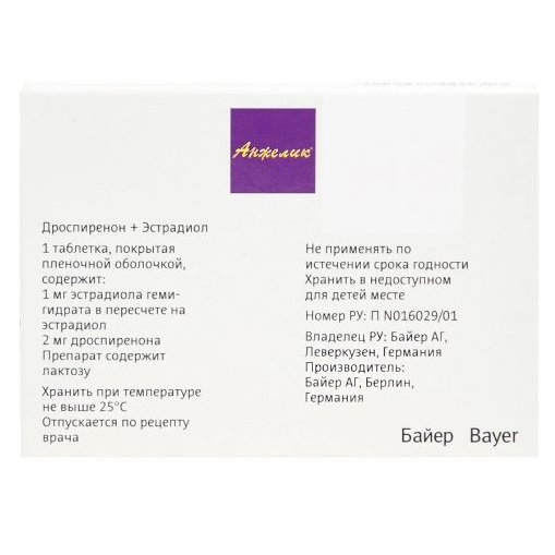 Препарат Анжелик® содержит 17β-эстрадиол, химически и биологически идентичный эндогенному эстрадиолу человека, и синтетический прогестаген, дроспиренон.