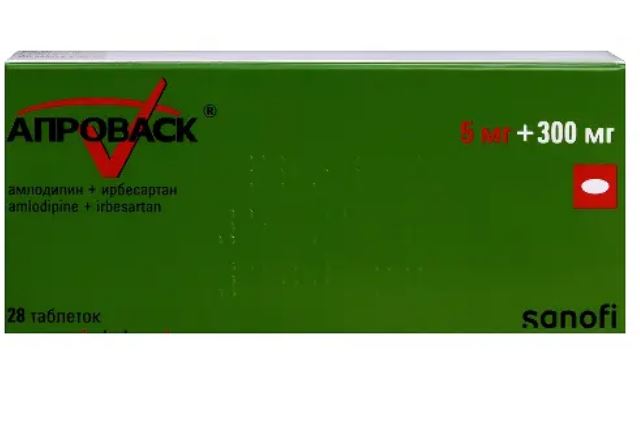 Фармакодинамические свойства каждого из действующих веществ, входящих в состав препарата Апроваск®, амлодипина и ирбесартана, способствуют их аддитивному антигипертензивному действию при применении в комбинации по сравнению с применением каждого из этих препаратов в отдельности. Как антагонисты рецепторов ангиотензина II (АРА II), так и блокаторы медленных кальциевых каналов (БМКК), снижают АД за счет снижения периферического сопротивления сосудов, однако блокада поступления кальция в клетку и уменьшение сосудосуживающего действия, обусловленного воздействием ангиотензина II, являются дополняющими друг друга механизмами.