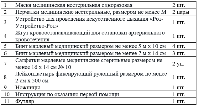 Рассчитан на помощь в самых распространенных при ДТП повреждениях – в состав аптечки входит все необходимое для предотвращения потери крови у пострадавших;