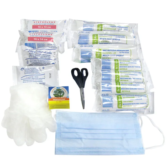 5. Бинт марлевый медицинский размером не менее 5 м х 10 см - 4 шт.