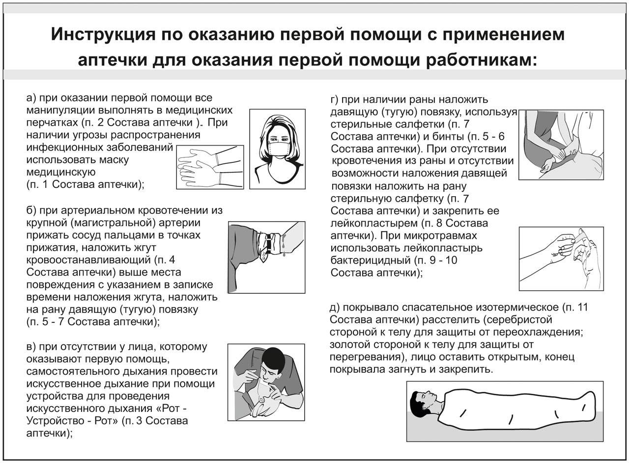13 Инструкция по оказанию первой помощи с применением аптечки для оказания первой помощи работникам 1 шт.