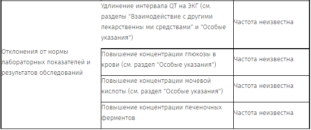 В клинических исследованиях гипокалиемия (концентрация калия менее 3,4 ммоль/л) наблюдалась у 10% пациентов, а концентрация калия менее 3,2 ммоль/л наблюдался у 4% пациентов через 4-6 недель после начала терапии. После 12 недель терапии среднее снижение концентрации калия в плазме составляло 0,23 ммоль/л. Большинство нежелательных реакций (лабораторные и клинические показатели) носят дозозависимый характер.