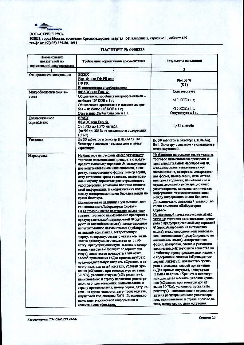 вспомогательные вещества: лактозы моногидрат 124,5 мг, гипромеллоза 64 мг, магния стеарат 1 мг, повидон 8,6 мг, кремния диоксид коллоидный безводный 0,4 мг;