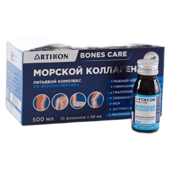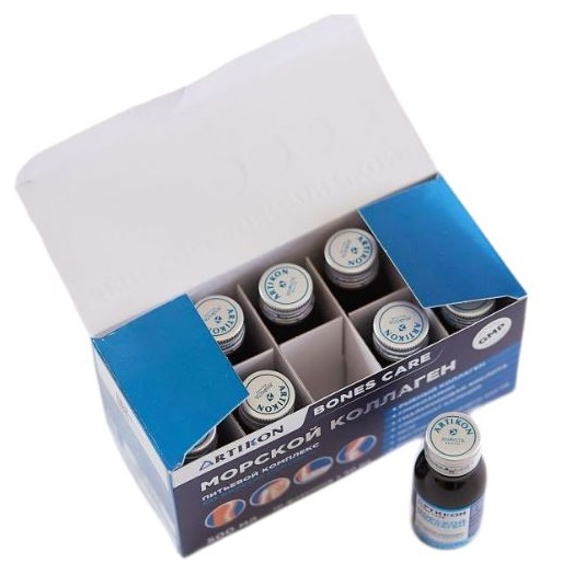 ARTIKON — БАД питьевой комплекс с гидролизованным морским коллагеном для здоровья суставов. Продукт содержит редкие аминокислоты, встречающиеся только в коллагене, которые легко усваиваются благодаря особому процессу ферментативного гидролиза, восстанавливают регенерацию ткани на клеточном уровне, участвуя в синтезе новых белков. АРТИКОН уменьшает скованность и дискомфорт, улучшает прочность и упругость связок и сухожилий, предотвращая травматические растяжения.