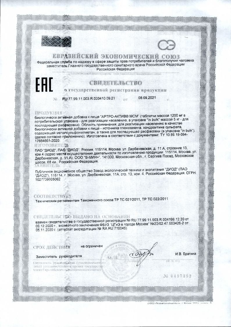 «АРТРО-АКТИВ® МСМ» содержит высокие концентрации глюкозамина, хондроитина сульфата и метилсульфонилметана (МСМ).