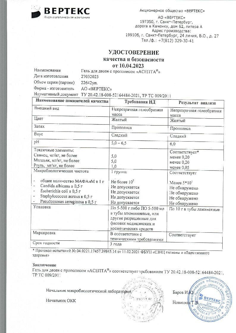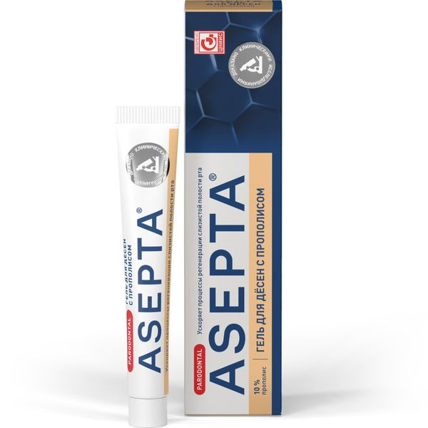 Гель для десен АСЕПТА предназначен для укрепления десен и профилактики воспаления. Гель для десен с прополисом АСЕПТА изготовлен на основе продукта жизнедеятельности пчел. Прополис обладает противовоспалительным, противомикробным действием в отношении грамположительных бактерий, а также противозудным и анальгезирующим эффектами (снижает болезненность пораженных тканей), ускоряет процесс регенерации и эпителизации раневых поверхностей, стимулирует метаболические процессы.