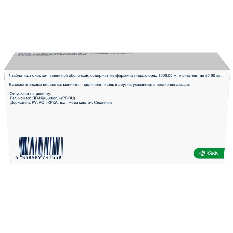 Каждая таблетка содержит 1000 мг метформина и 50 мг ситаглиптина.